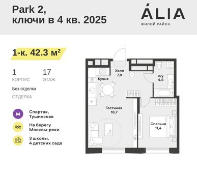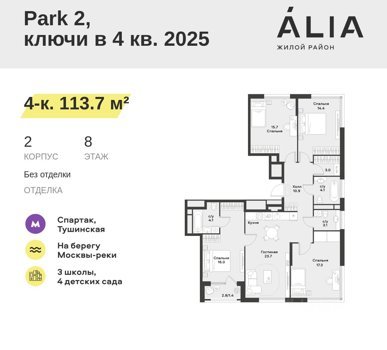 Старт продаж сдача 4 квартал 2027 1, 2, 3, 4 комнаты от 23.4 м2 от 12,7 млн. руб