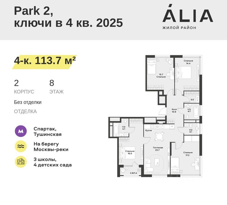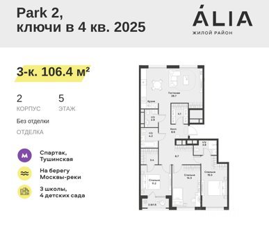 Сдан частично Сдача 3 квартал 2028 1, 2, 3, 4, 5 комнат от 40.4 до 209.6 м2 от 23,2 до 154,3 млн. руб
