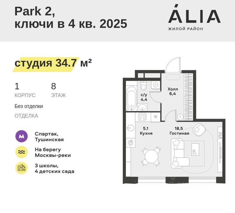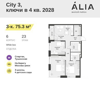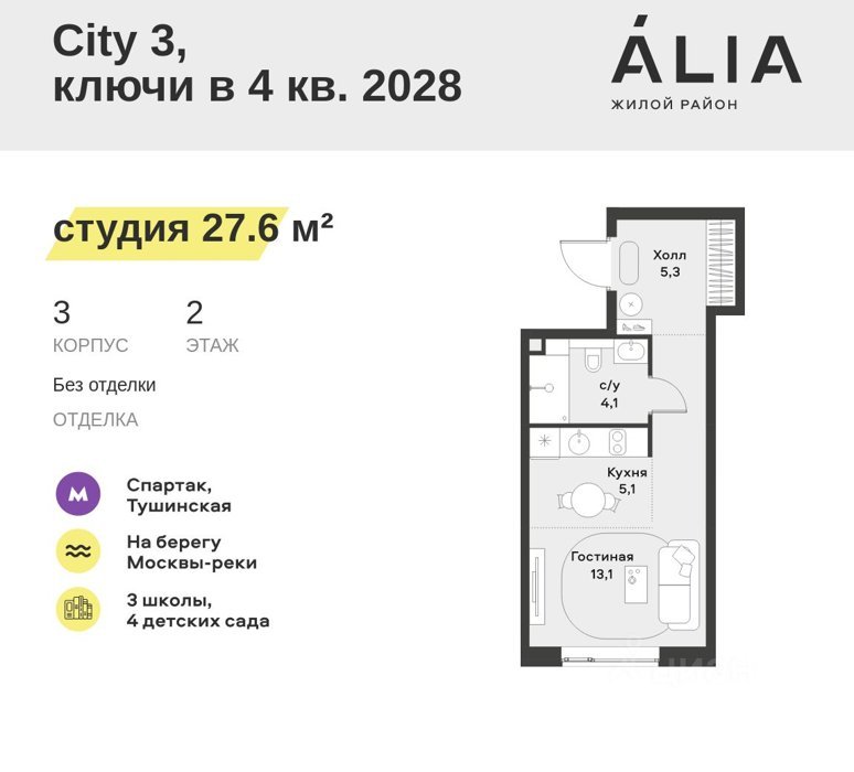 В продаже! Cдача 4 квартал 2027 Cтудии, 1, 2, 3 комнаты от 28.2 до 103.1 м2 от 18,4 до 75,2 млн. руб