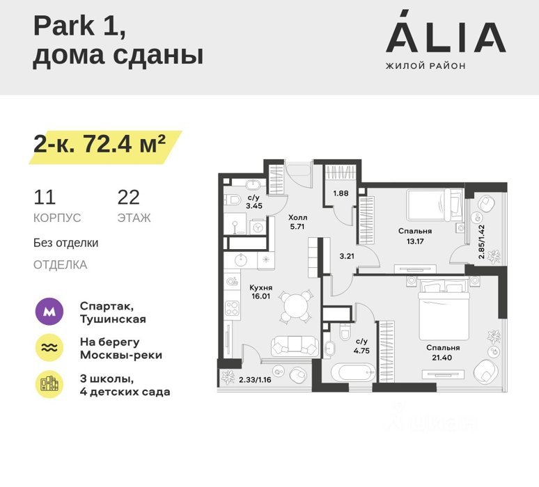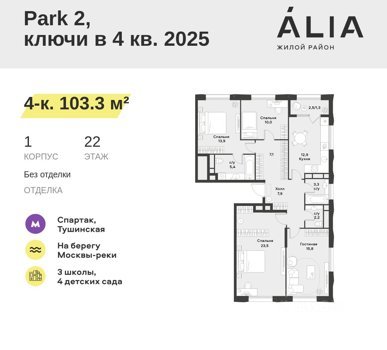 в продаже! Сдан 1, 2, 3, 4, 5 комнат от 22 до 143.1 м2 от 13,8 до 93,0 млн. руб