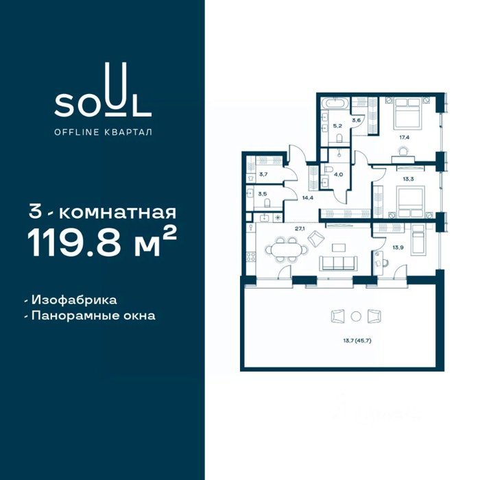 В продаже! Сдача 1 квартал 2027 1, 2, 3 комнаты от 25 до 120.1 м2 от 12,8 до 49,9 млн. руб