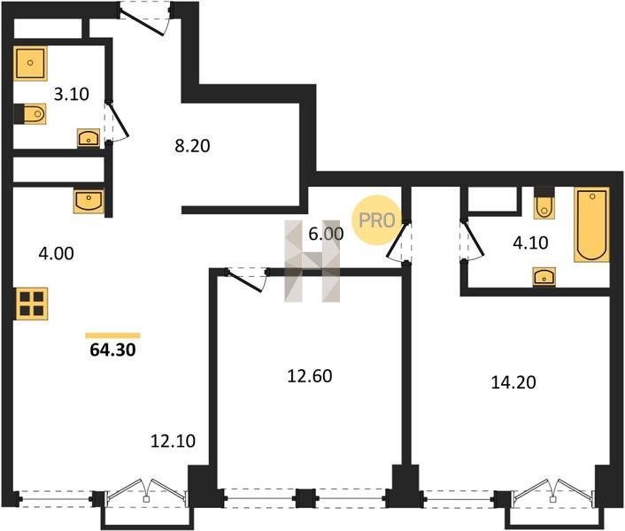 Старт продаж сдача 4 квартал 2027 1, 2, 3, 4 комнаты от 23.4 м2 от 12,7 млн. руб