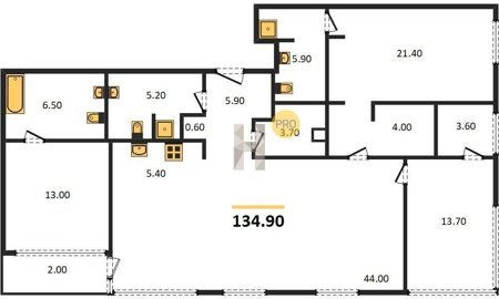 в продаже! Сдан 1, 2, 3, 4, 5 комнат от 22 до 143.1 м2 от 13,8 до 93,0 млн. руб